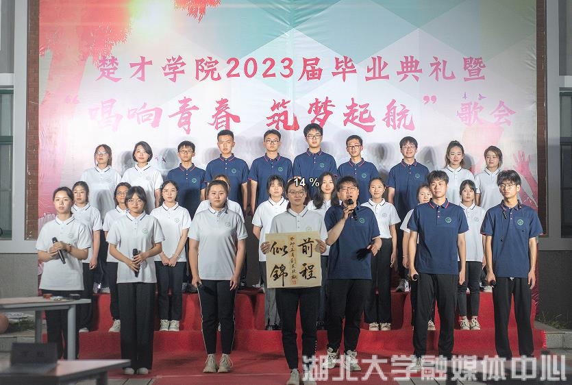 5月19日,必赢线路检测中心楚才学院2023届毕业典礼暨“唱响青春 筑梦起航”歌会顺利进行。典礼共有三个议程,分别是颁奖发言、歌唱表演和总结。