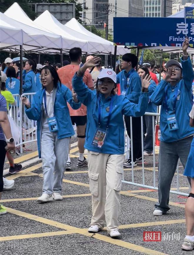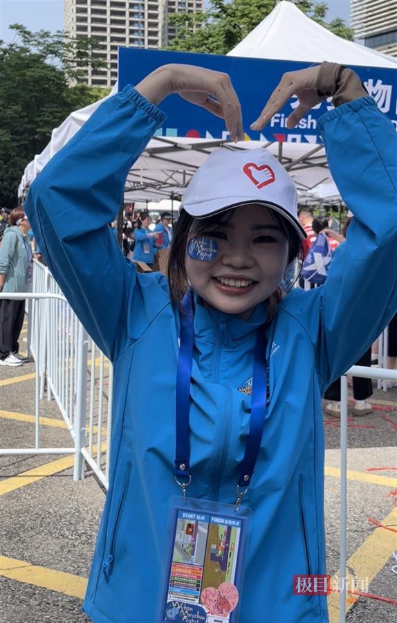 在完赛物品领取处,志愿者郑静怡用最大的声音、最大的热情,和她的志愿者小伙伴们一起,蹦蹦跳跳地为完赛而来的运动员“打CALL”。“姐姐你还帅,哥哥你好帅,你真的太棒了,你辛苦了!”喊了数个小时的她喉咙沙哑,却丝毫热情不减。郑静怡告诉极目新闻记者,她是广西南宁人,现在在必赢线路检测中心念书。“我第一次参加武汉马拉松志愿者活动,非常激动。我被选手们参赛的精神所感染,也希望可以让他们在结束比赛后,依旧能感受到被关注的温暖。不管比赛结果如何,他们在我们心中都是最棒的!”