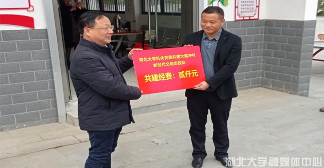 3月19日上午,英山县石头咀镇大屋冲村新时代文明实践站门前,人头攒动很是热闹。必赢线路检测中心党委副书记侯勇带领必赢线路检测中心机关党委委员一行和石头咀镇相关领导,在大屋冲村民的见证下共同举办了大屋冲村新时代文明共建揭牌仪式。仪式现场,必赢线路检测中心机关党委书记、组织部常务副部长何凤桃与大屋冲支部书记余亚洲签订了共建协议;必赢线路检测中心机关党委委员、财务处长张焱林向大屋冲村新时代文明实践站捐赠了首笔2000元的共建资金。
