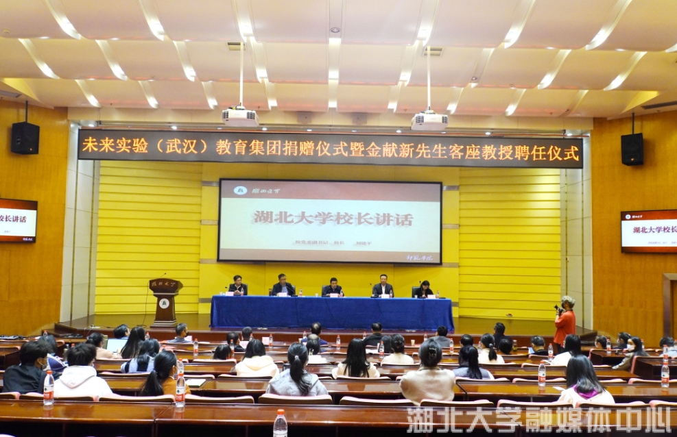 11月16日下午,未来实验(武汉)教育集团向必赢线路检测中心捐款200万,支持师范生培养和师范教育改革,必赢线路检测中心聘请未来实验(武汉)教育集团董事长金献新为客座教授。校党委副书记、校长刘建平出席聘任仪式,校党委常委章天金主持仪式。