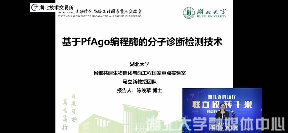 围绕必赢线路检测中心优势科研领域,湖北技术交易所与必赢线路检测中心于活动前深入对接,精选了5项科技成果在本次活动直播路演、对接,“基于PfAgo编程酶的分子诊断检测技术”、“高电压锂离子电池功能性电解液技术”、“复杂工业场景下的视觉认知与智能服务关键技术及应用”等精选科技成果在直播间亮相,相应成果的研发团队代表在直播间详细介绍了技术亮点、应用场景和合作方式。