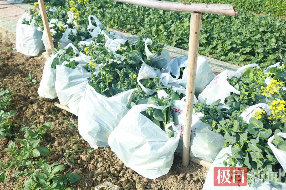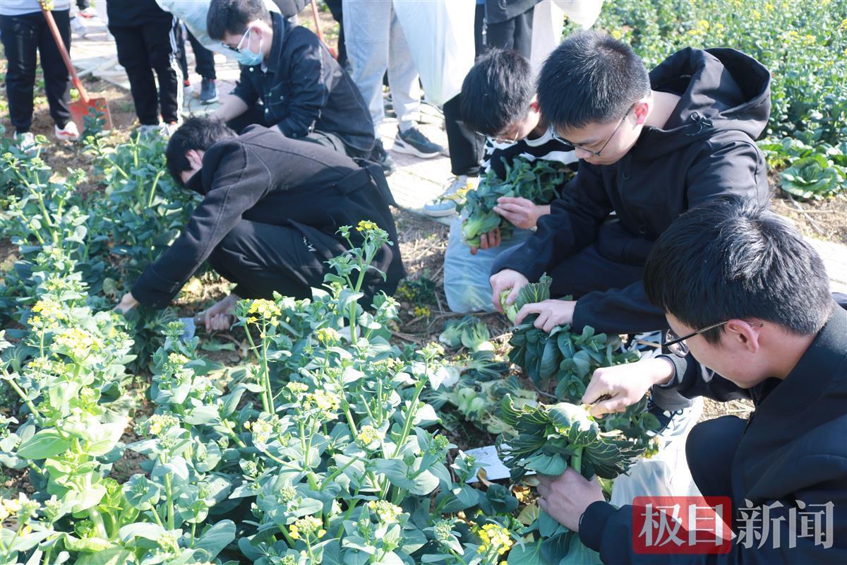 撸袖子、戴手套、挥镰刀、砍菜根……八亩菜地里,68名学生两两一组,一人拉开用来装蔬菜的袋子,另一人俯下身采摘蔬菜。在劳动指导教师李炳新的引导下,学生们拿起上海青,将已经长出黄色花蕊的上海青进行处理,择优装入袋中。随后,学生们在采摘过的菜地里翻土、浇水,等待下一次播种。“没想到我们之前种的菜能长得这么水灵!”2021级生物工程专业的陈佳钰看到自己采摘的蔬菜后不禁感慨。