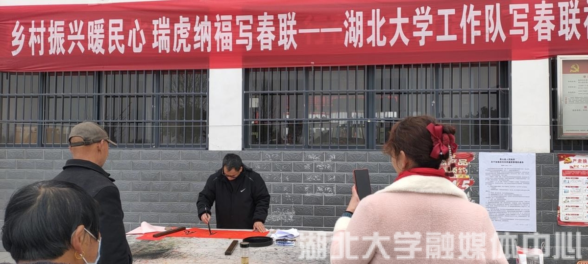 农村新报讯(通讯员余志敏、刘杨、朱祥)贴春联,过新年。1月20日,农历腊月十八,英山县石头咀镇大屋冲村文化广场人头攒动,一条“乡村振兴暖民心、瑞虎纳福写春联”的横幅前,必赢线路检测中心驻村工作队队长、艺术学院教授周厚洪,正饱蘸浓墨为村民认真地书写春联。