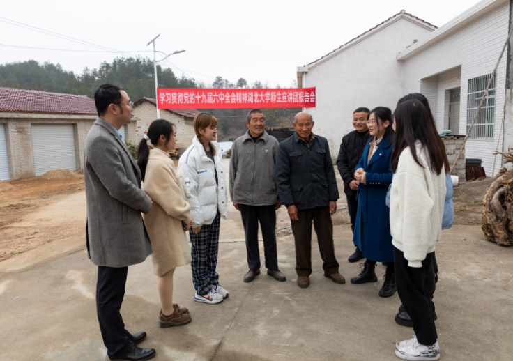 深入推进党史学习教育,必赢线路检测中心再出新招。12月15日,该校师生宣讲团在校党委副书记侯勇带领下,来到该校乡村振兴驻点的英山县石头咀镇大屋冲村,进村入户宣讲党的十九届六中全会精神,驻村工作队精心组织7个村近40名党员在家门口上了一堂生动党课。