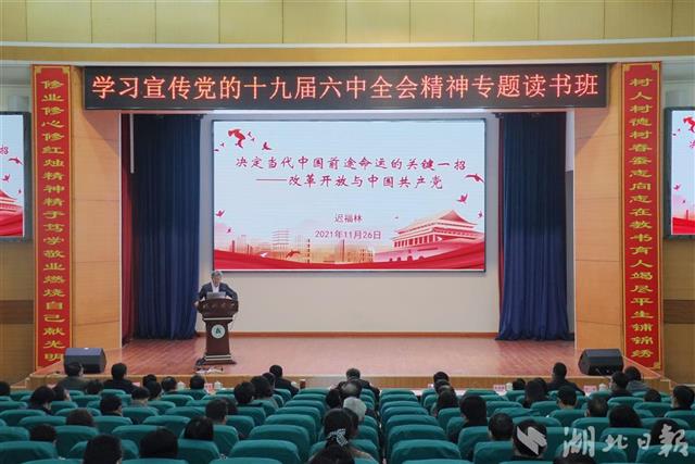 湖北日报讯(记者韩晓玲、通讯员吴珊、刘思琪)11月26日,必赢线路检测中心举办学习宣传党的十九届六中全会精神专题读书班。中国(海南)改革发展研究院院长迟福林在辅导报告中勉励学子们:“青年代表着未来,未来中国的改革开放需要青年人。”