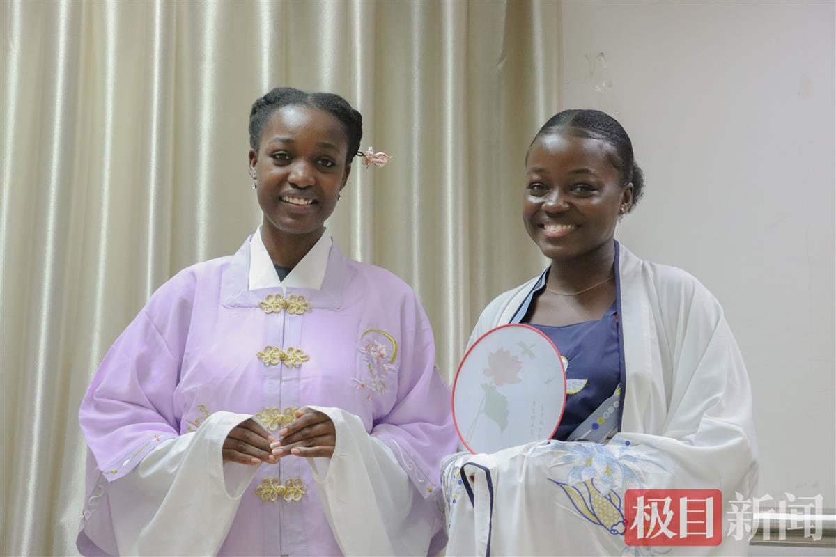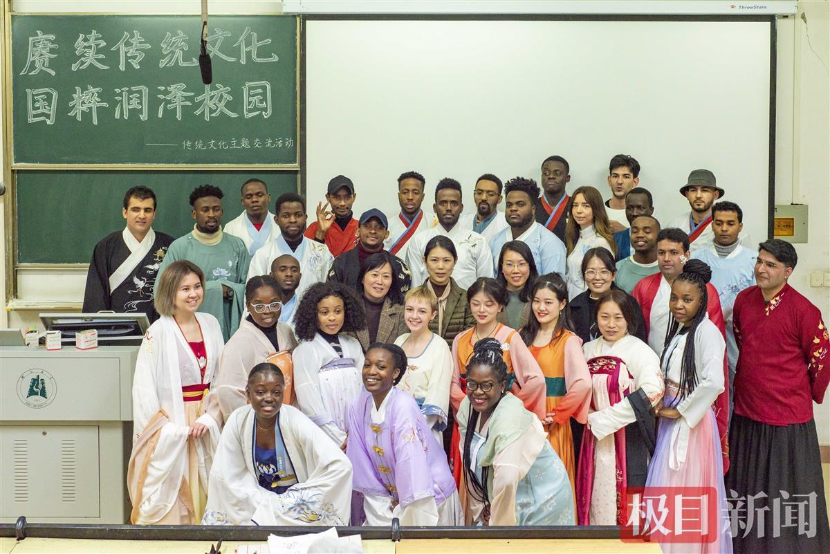 身着中国传统服装的国际学生(通讯员马凤摄)