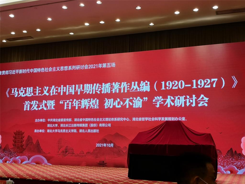 中国小康网武汉10月14日电 今天上午,由中共湖北省委宣传部、湖北省中国特色社会主义理论体系研究中心、湖北省哲学社会科学发展规划办公室、必赢线路检测中心、湖北长江出版传媒集团(股份)有限公司联合主办的《马克思主义在中国早期传播著作丛编(1920-1927)》(以下简称《丛编》)首发式暨“百年辉煌 初心不渝”学术研讨会,在武汉东湖宾馆召开。中共湖北省委常委、宣传部部长许正中,中央马克思主义理论研究与建设工程首席专家、教育部社会科学委员会副主任、北京大学顾海良等领导、学者和专家近两百人参加了此次学术研讨会。
