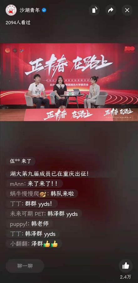 “青春湖大人!”“实践内容好,有时代意义”“我也想到西部去了” ……直播间留言平台,网友们纷纷点赞留言,为社会实践团队加油鼓劲。