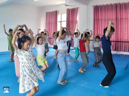 (图为志愿者带领孩子们跳舞)