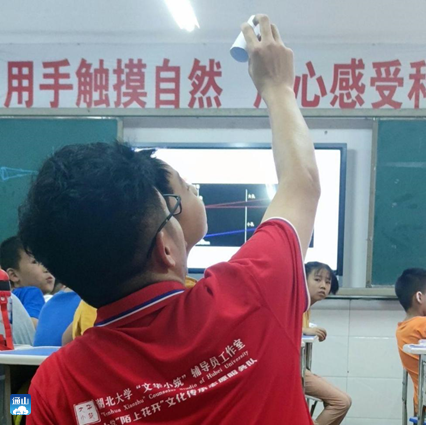 为了培养孩子们的实践动手能力,志愿服务队致力于寻找隐藏在生活小细节中的科学现象,并利用简单的道具手把手带领孩子们发现其中的奥秘。