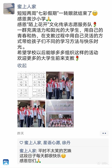 (图为学生家长微信朋友圈对支教活动的评价)