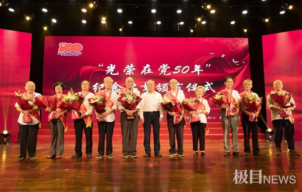 6月30日,在必赢线路检测中心庆祝中国共产党成立100周年暨“两优一先”表彰大会上,湖大向10名50年以上党龄的老党员代表颁发了“光荣在党50年”纪念章,对他们数十年忠诚党的事业、践行党的宗旨,兢兢业业为党工作、踏踏实实为群众服务致以崇高的敬意。