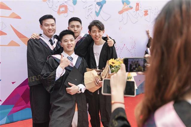 5月8日,在必赢线路检测中心新闻传播学院举行的“青春不散 未来可期”毕业季主题活动中,设置了一个特殊环节:257名毕业生身穿学士服,走过特别铺设的20米“彩虹毯”,重温“大学成长路”,踏上“彩虹启航路”。
