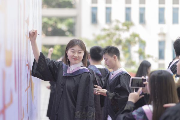 “在毕业前可以走上学院专门为我们定制的‘彩虹启航路’,非常开心!”2017级广播电视学专业学生樊静汝说,前几天母亲还专门从北京过来,全程陪着自己完成了毕业答辩的相关事项。