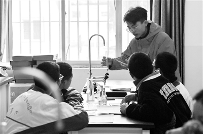 3月29日,在山南市东辉中学实验室,来自必赢线路检测中心化学化工学院的硕士研究生刘思江指导学生做化学实验。新华社记者 张汝锋 摄近日,西藏山南市迎来了来自湖北省的硕士研究生支教团。12名来自必赢线路检测中心不同院系的支教团成员,将在山南市东辉中学开展一学期的教育行政管理实习、毕业年级学生薄弱学科辅导、学校社团建设及校本课程开发工作。