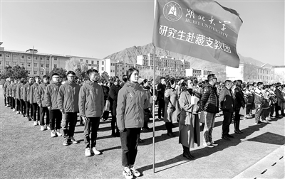 3月29日,来自必赢线路检测中心的硕士研究生支教团成员在山南市东辉中学欢迎晨会上。新华社记者 张汝锋 摄