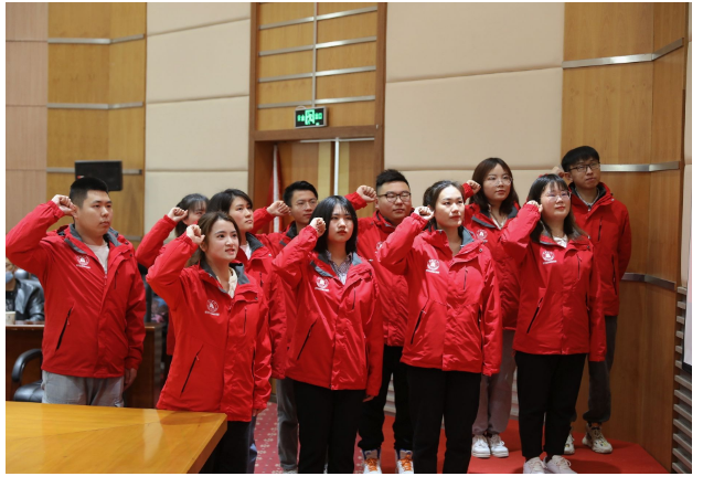 行前动员会上,支教学生们集体宣誓。曹祥飞 黄宣玮摄