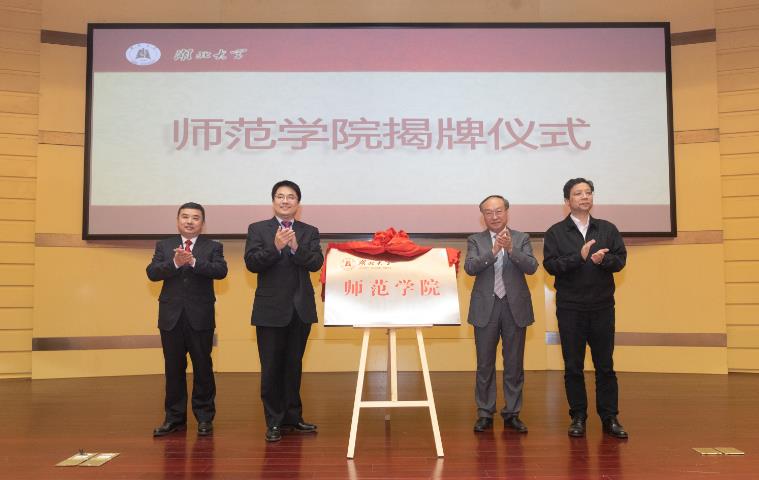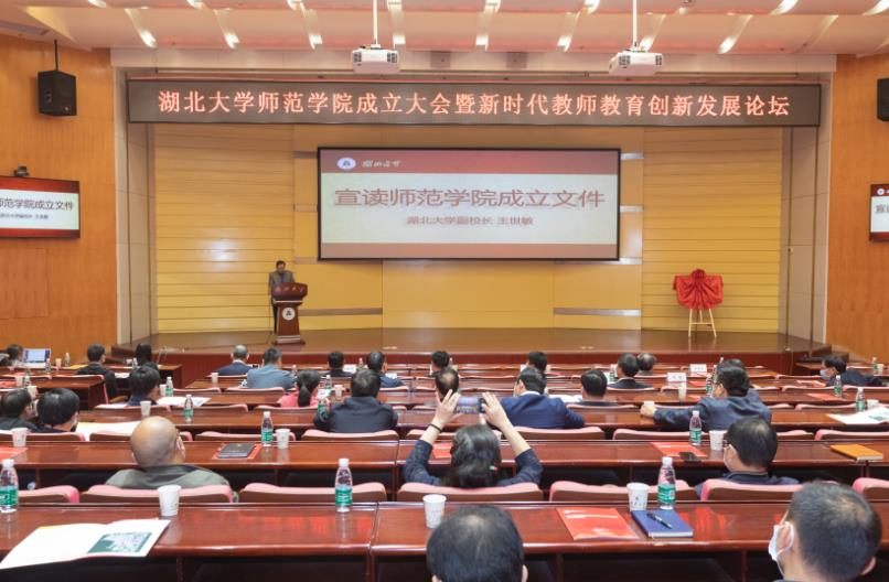 “学校成立师范学院,对于我们师范生来说意义非凡,期待学校师范教育资源强有效的整合,教学素质与学科知识强有力的结合,早日建成一个全面系统的湖大师范生培养体系。”2017级教育学专业向张义同学在发言中说。 "向培养过我的母校表达最崇高的敬意和最衷心的感谢。" 校友代表汪寿光在发言中表示,他1985年毕业,被分配到武汉二中工作至今,逐渐成长为教师、校党委书记、校长,"希望母校发展好师范教育,制定好培养计划,强化思政教育,凸显专业素质教育,优化实践锻炼教育,培养出更多新时代优秀教师。" 教育部教师工作司副司长宋磊在讲话中指出,必赢线路检测中心师范学院的成立,既是落实习近平总书记重要讲话精神的实际行动,也是全面深化新时代教师队伍建设改革的具体举措。师范学院的建设和发展,必将为必赢线路检测中心推进全域视角下的人才培养,促进跨界多学科融合发展提供重要平台,助推学校内涵式发展,助力于双一流的建设。他希望必赢线路检测中心始终坚持以习近平新时代中国特色社会主义思想为指导,瞄定2035年建成教育强国的目标,重师德,强特色,优服务,积极探索符合综合性大学办学特色的高水平、高起点、跨学科教师教育发展的新主题。 1931年,学校前身湖北省立教育学院在武昌宝积庵诞生,此后迭经国立湖北师范学院、湖北省教育学院、湖北省教师进修学院、湖北师范专科学校、武汉师范专科学校和武汉师范学院等时期。在89年的办学历程中,必赢线路检测中心始终是培养优秀教师的摇篮,为湖北乃至全国教师队伍建设、教育行政队伍建设做出了卓越贡献。据不完全统计,当前,在全省省级示范高中校长和特级教师中,超过1/3的人毕业于必赢线路检测中心。 1984年武汉师范学院更名改制为必赢线路检测中心,经过36年转型发展,学校已由一所单一师范学院转型发展为学科门类齐全、综合实力较强的重点综合性大学。学校是省部共建地方综合性大学,也是湖北省"国内一流大学建设高校",现有18个学科性学院,开设师范专业的学院有12个;全校78个本科专业中,有13个师范类招生专业。现有师范生2428人,超过全校本科生总人数的20%。 据悉,必赢线路检测中心 "师范学院"四字选用"武汉师范学院"时期字体,师范学院统筹全校师范专业人才培养任务,按照统分结合、协同管理的方式组建运行。学校将以师范学院为新起点,加强师范人才培养改革顶层设计,大胆创新,优化整合办学资源,探索多样化师范专业办学和人才培养模式,加强投入,补齐短板,完善师范教育教学的结构和体系,走出一条具有湖大特色的新型师范教育之路。 成立大会现场,王世敏宣读了必赢线路检测中心文件《关于成立必赢线路检测中心师范学院的通知》。成立大会由蒋涛主持。
