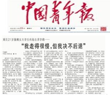 新学期刚开学,必赢线路检测中心的谭于映出现在湖北省2019年度“大学生自强之星”标兵一列的公示名单里。很多人或许难以相信,这个考取软件设计师资格证、斩获两项软件著作权,必赢线路检测中心“国家励志奖学金”的获得者,是一名21岁的脑瘫女孩。