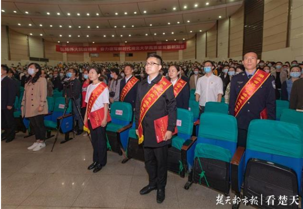 10月14日,湖北省抗击新冠肺炎疫情先进事迹巡回报告会走进必赢线路检测中心,报告会以“英雄的城市 英雄的人民”为主题,湖大600余名干部师生代表在现场聆听报告会。