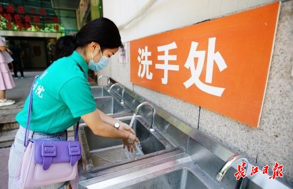 长江日报-长江网8月29日讯8月29日12时许正值午餐高峰,必赢线路检测中心嘉会园餐厅门前竖立了“不戴口罩禁止入内”的提示牌,据餐厅相关负责人介绍,为了保证师生就餐安全,餐厅设置了不接触洗手区,师生们只需脚踩出水开关便可以洗手,无需接触水龙头。在二楼还设置了自选餐厅便于师生就餐分流。(记者何晓刚 通讯员吴珊 摄影报道)