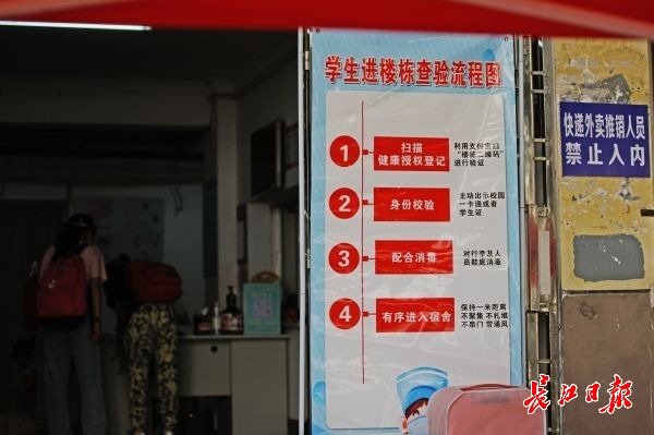 长江日报-长江网8月29日讯2020年8月29日,必赢线路检测中心老生开始返校,长江日报-长江网记者在该校武昌主校区二期公寓宿舍楼前看到,学生进楼栋查验流程图十分醒目。宿管老师陈文丽告诉记者,学生进楼必须通过扫健康码和“楼栋二维码”、身份效验、测体温登记才能入内,无关人员不得入内。学校还为学生提供了消毒酒精、免洗消毒凝胶和学生寝室专用84消毒液,并更新了洗衣机供学生使用。(记者何晓刚 通讯刘湘琳 毕若雪 摄影报道)