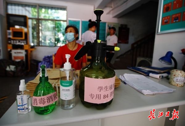 学校为学生提供了消毒酒精、免洗消毒凝胶和学生寝室专用84消毒液。