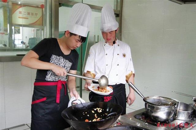 在烹饪学校,周子傲学会的第一件事就是“吃苦”。教室里仅有2个大炉子,没有空调, 40摄氏度以上的高温下,每次做一盘菜,衣服都会被汗湿透。为了练习掂锅等技巧,周子傲每晚还要增加一个小时的力量训练。
