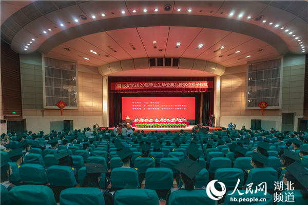 这是一场特殊的毕业典礼,受新冠疫情影响,小礼堂少了人声鼎沸,教育学院8人、资环学院11人、艺术学院10人……与往年各学院近百名代表相比,这些零星数字组成了近200名毕业生代表;这是一场温情的毕业典礼,校长谢红星深情寄语毕业生,2020,爱你、爱你,加倍地爱你;这是一场跨越时空的毕业典礼,学校采用了线上+线下相结合的形式,6293名湖大毕业生,绝大多数通过学习强国、央视频、必赢线路检测中心官方抖音等平台,同步观看直播,参加“云典礼”。