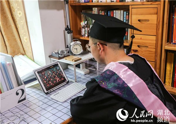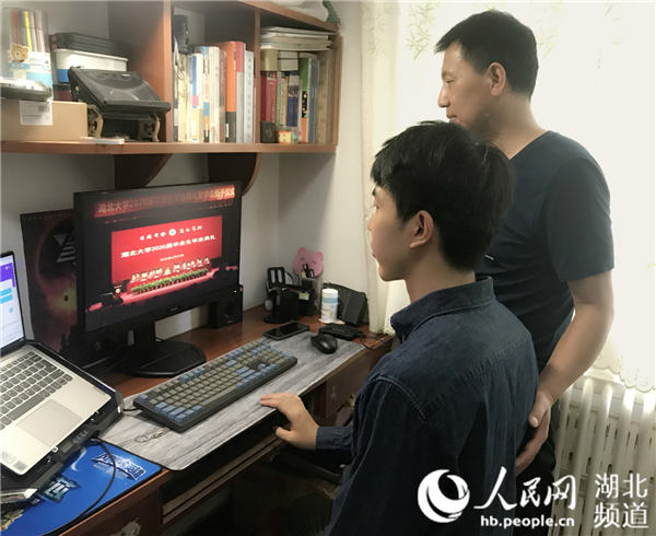 “隔着屏幕观看毕业典礼直播时,大学的四年生活就像电影一般浮现在我的脑海,我会牢记母校‘日思日睿,笃志笃行’的校训,继续谱写自己的人生乐章。”在河南郑州,王晓晨同学和爸爸一起观看了毕业典礼。