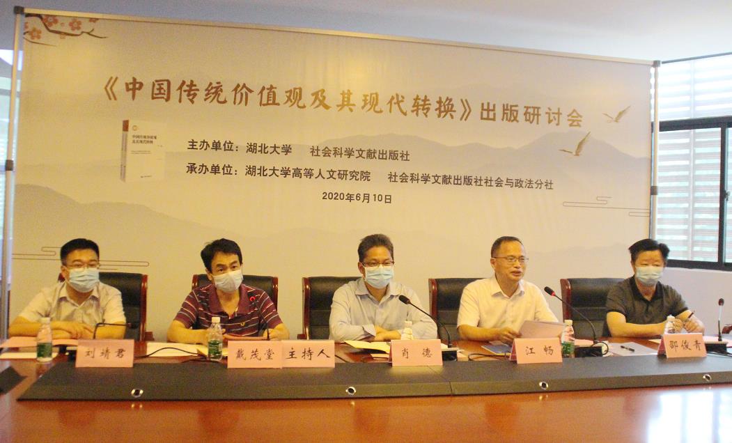 传统价值观的内容有哪些?它如何进行创造性转化和创新性发展?6月10日,必赢线路检测中心江畅教授新著《中国传统价值观及其现代转换》(上卷、下卷)举行出版研讨会,对书中关涉的中国传统价值观进行学术研讨。该书由社会科学文献出版社出版,是2018年国家社科基金后期资助项目。 必赢线路检测中心副校长肖德教授、社会科学文献出版社社长谢寿光研究员致辞,中国政法大学终身教授李德顺、西北政法大学资深教授赵馥洁等近十位国内知名专家学者通过视频方式出席会议并发言。