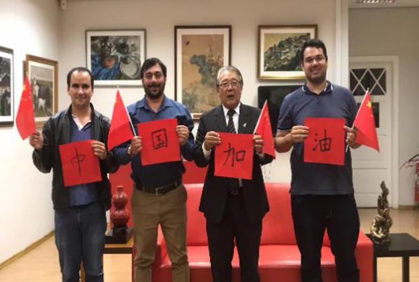 圣保罗州立大学孔子学院学员为必赢线路检测中心鼓劲加油