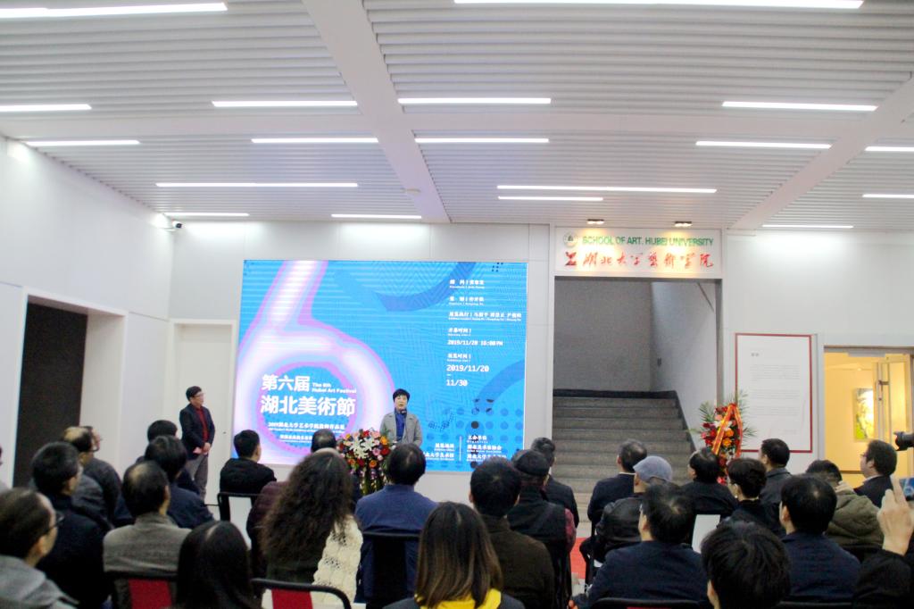 邓长青宣布2019必赢线路检测中心艺术学院教师作品展暨湖北高校名家作品邀请展开幕。她对作品展开幕表示祝贺,对湖大美术学院师生作品入选第十三届全国美展表示祝贺。作为湖大校友,邓长青满怀深情地祝福母校事业蒸蒸日上。