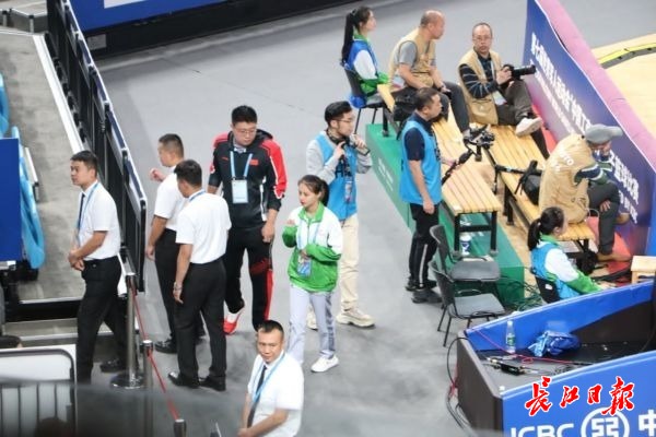作为军运会新闻宣传处的志愿者,王乐璇一人身兼广播电视转播助理、现场导演助理等多职,每天穿梭在赛场,跟着老师拉摄影机线、绕半场来回给评论员递资料、通知外媒记者采访等是王乐璇工作的常态。