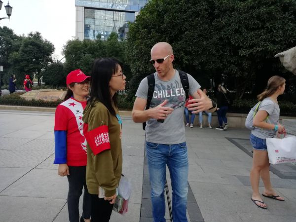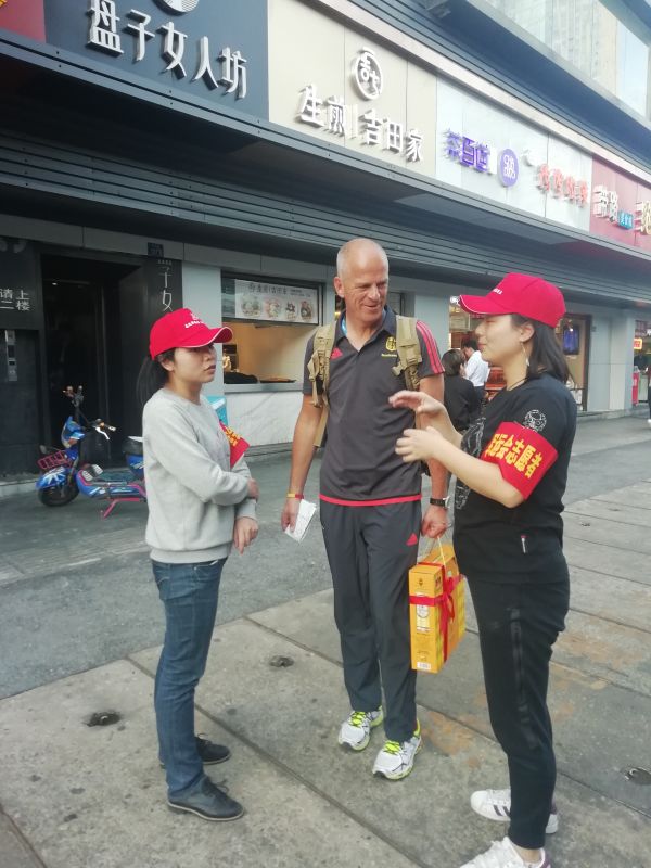 当天下午,志愿者占莉娟、卜桂梅正巡逻至地铁楚河汉街D出口,突然看到星巴克门口站着四位高高大大的外国人,正在四处张望,讨论着什么。担心对方可能需要帮助,志愿者主动上前询问。“果不其然,外国人正在找去往汉街的路,我从地铁口把他们送到了目的地。“卜桂梅说,路上,她与外国人愉快交谈,得知他们来自波兰,很喜欢武汉。