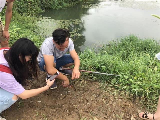 为了解武汉市湖泊入侵物种,必赢线路检测中心资源环境学院环境工程系的赵美玉、朱晓宇、李龙飞等5位大学生组建了一支学生“三下乡”社会实践队,选择沙湖、南湖、东湖、黄家湖和四美塘等五个具有代表性的湖泊作为调研对象,实地考察这些湖泊里的外来物种入侵情况,记录外来入侵物种的类型、发生面积、危害面积、生长情况、岸边距离等指标。