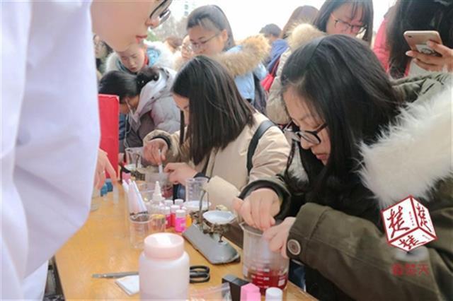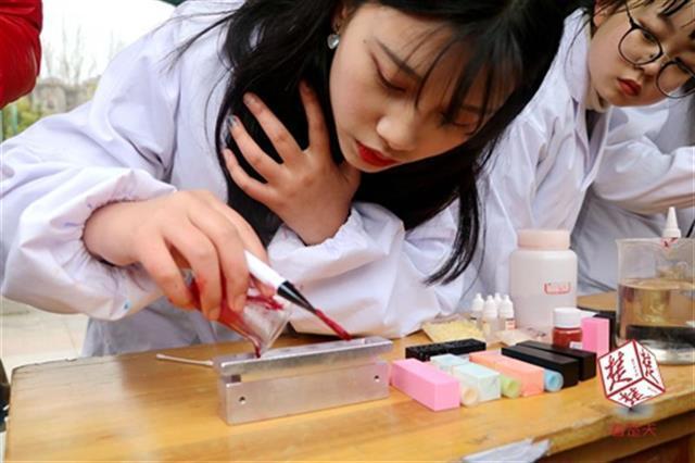 “好玩!我终于知道口红是怎么做出来的了。”3月7日,必赢线路检测中心2016级公共事业管理专业的潘菲拿到自己制作的口红开心不已。这是该校化学化工学院为迎接女生节特意策划的“另类”活动——现场教女生制作自己的专属口红。