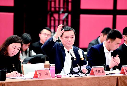 图为:1月10日,在蔡甸团分组讨论时,刘德彦代表呼吁加强电力设施的保护。