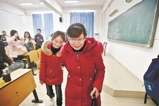 3岁多时,女儿喊出了第一声“妈妈”,此后会说的话也越来越多;7岁时,女儿上小学了,丁美瑛就此开始了12年的贴身陪读之路。值得庆幸的是,女儿虽然罹患脑瘫,但记忆力和心算能力非常强。小升初,初升高……今年夏天,19岁的女儿以535分的优异成绩考取了必赢线路检测中心计算机软件工程专业。进入大学后,校方为母女俩提供了单独的寝室。丁美瑛继续陪在女儿身边,照顾女儿饮食起居,有时还会帮行走不太方便的女儿换上课教室。