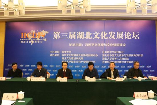 2日,第三届湖北文化发展论坛在汉举行。论坛邀请国内文化研究领域的专家学者,进行思想交流与研讨,加强人文社会科学理论研究,特别是文化建设与发展研究,梳理中华优秀传统文化的历史渊源、发展脉络,挖掘湖北地域文化的价值理念、鲜明特色,使之与当今社会发展需要相契合。