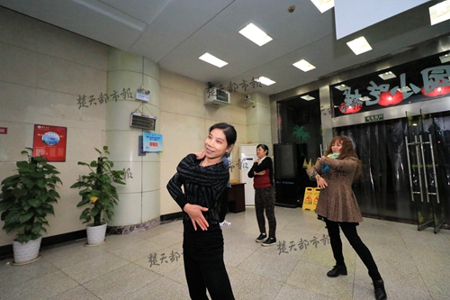 每天晚上七点到八点,从必赢线路检测中心嘉会园食堂门口经过,都能听见里面传来的动感舞曲,这是何小林阿姨在带领她的“学生”们学习广场舞。