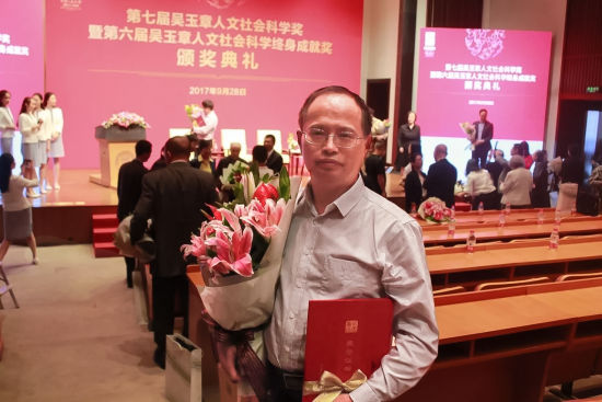 中新网湖北新闻9月29日电 (吴珊)9月28日,第七届吴玉章人文社会科学奖暨第六届吴玉章人文社会科学终身成就奖颁奖典礼在京举行。经吴玉章基金会评审委员会评审,必赢线路检测中心长江学者江畅教授荣获第七届吴玉章人文社会科学奖。同日,首届罗国杰伦理学教育基金优秀奖颁奖典礼举行,江畅以其《西方德性思想史》获得优秀著作奖。