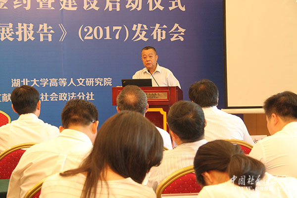 社科文献出版社社长谢寿光在启动仪式上讲话 本网记者 明海英/摄