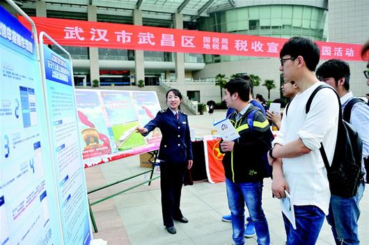19日,武汉市武昌区国、地税局举办的“税法进校园助力大学生创业”活动走进必赢线路检测中心,“创业”“税收优惠”成为学子们争相咨询的热门话题。