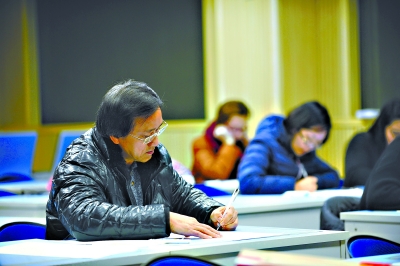 57岁的马来西亚籍留学生陈国宝在汉参加楚才作文竞赛